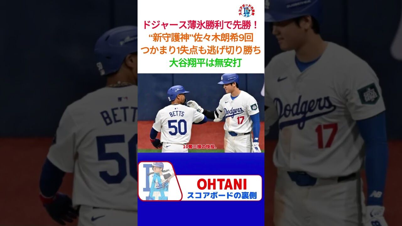 @P63961184最後三振したバッターがその前の球に当たってれば同点だったのに 緊迫した場面でそこまで判断出来なかったのかな🙄 大谷翔平 佐々木朗希 ドジャース薄氷勝利で先勝!“新守護神”佐々木朗希9回つかまり1失点も逃げ切り勝ち 大谷翔平は無安打 #Yahooニュース news.yahoo.co.jp/articles/3bae4…