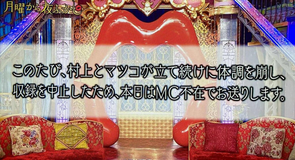 @sultanmehmat1返信先:@livedoornews 『月曜から夜ふかし』、マツコ&村上信五が体調不良でMC不在のまま放送💦 タイトルはコールされるも2人の姿なし。「次回に状況説明」とのこと。